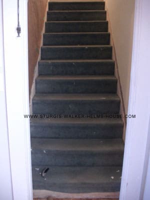 The back staircase from the front landing to the back of the kitchen was carpeted by the School District and thus saved the step treads from wear.